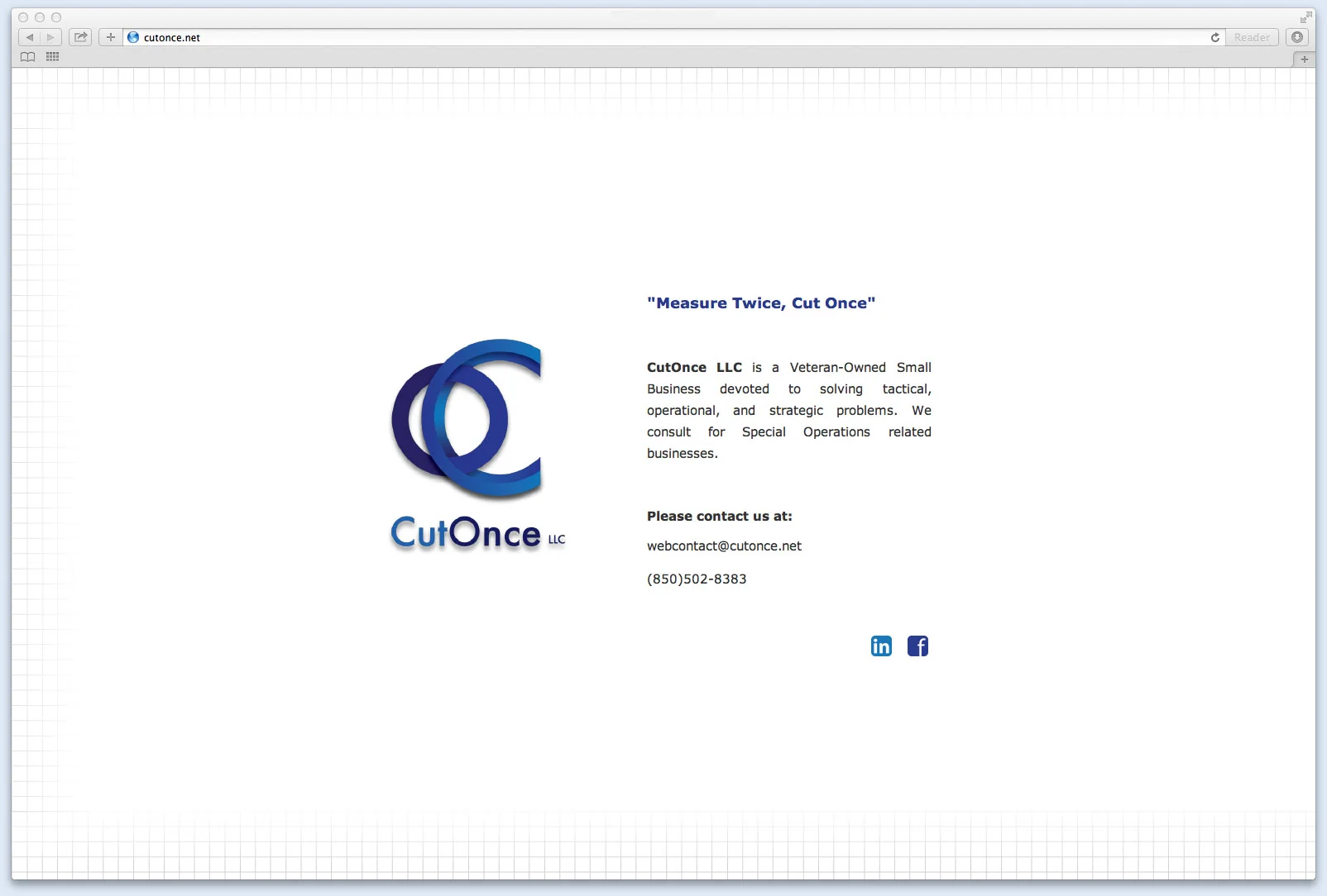 CutOnce preferred to not have a web presence at all, but opted for a very basic, "non-sticky" site shown below.